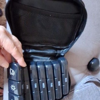 • Durable & moisture-proof – secure lids and a tough canvas case keep pills safe